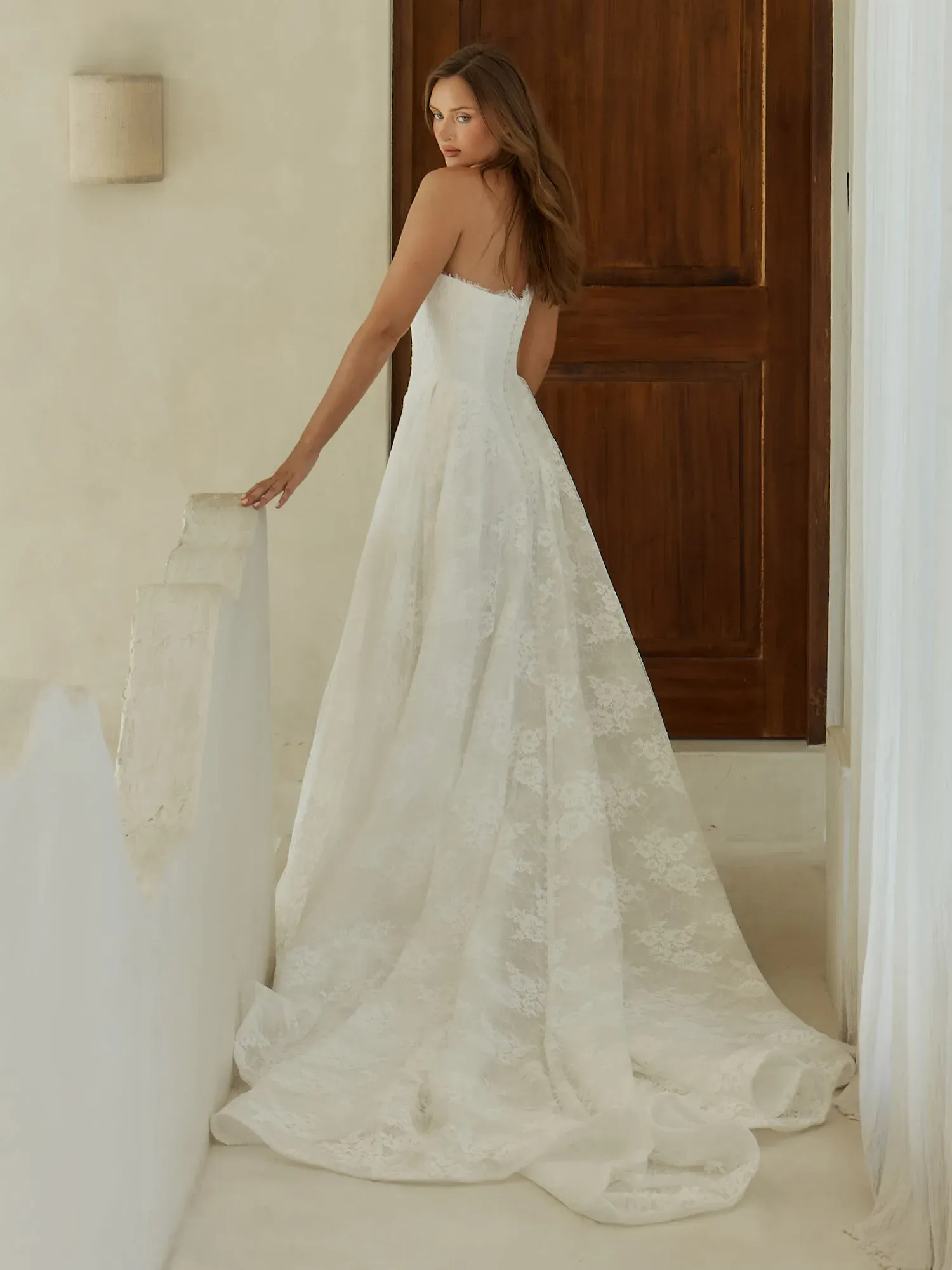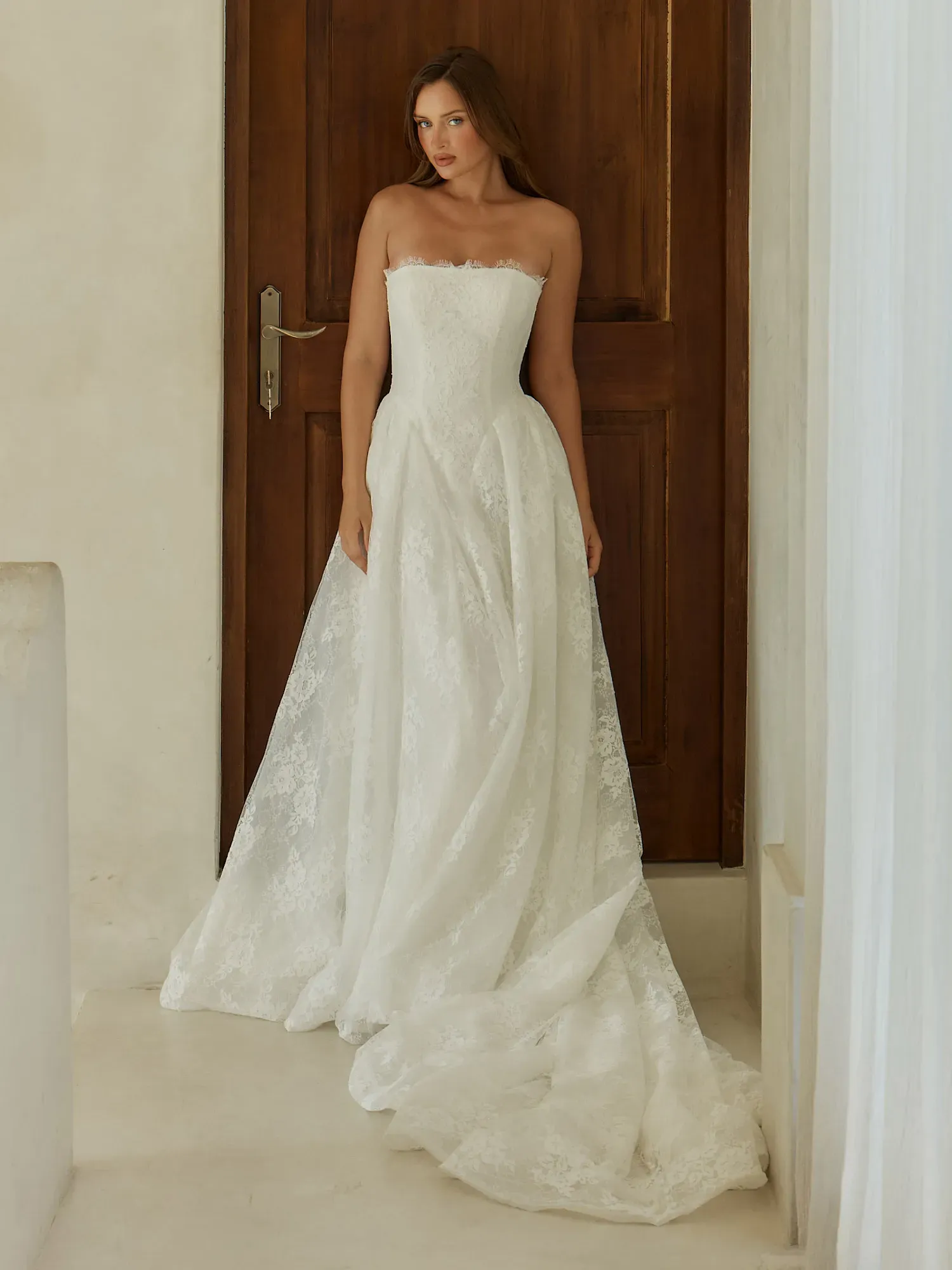 Chic, timeless, and softly vintage, Garner by Serene Bridal is designed for the bride who loves classic lace elevated with modern, wearable elegance. Crafted entirely in Chantilly lace, she balances refined structure with romantic softness.